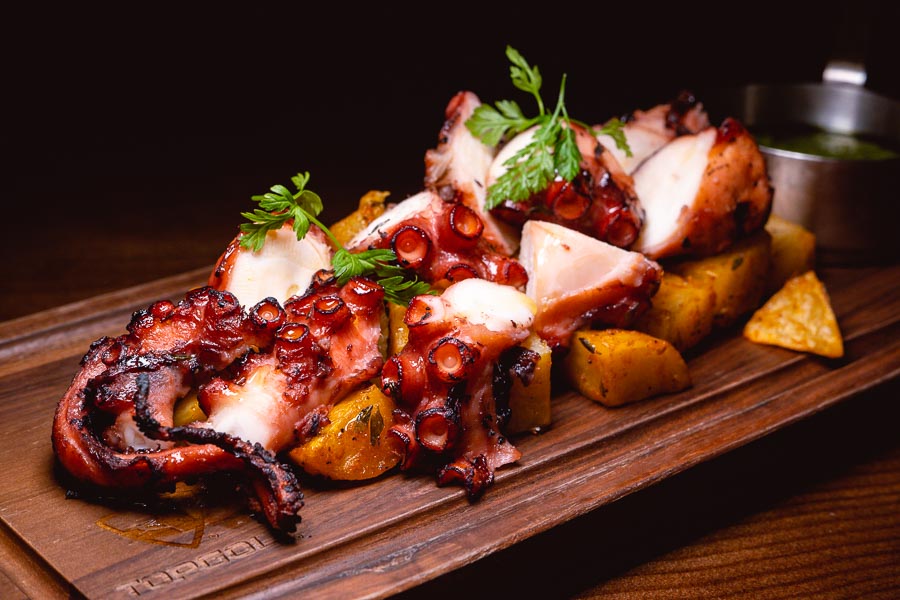 Grilled Octopus (¥138) served over home fries with a potent pesto sauce.