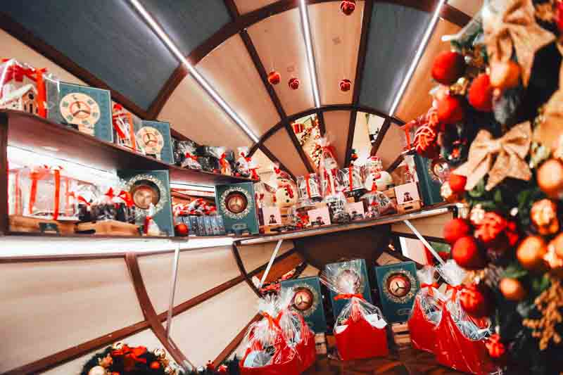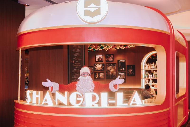 Stop in at the Shangri-La Airship to shop for gifts and Advent calendars or drop in a message to Santa at the Christmas Post Office. Have a drink at the Magical Lounge within the Santa Express and strike a pose next to the Reindeer Coach.