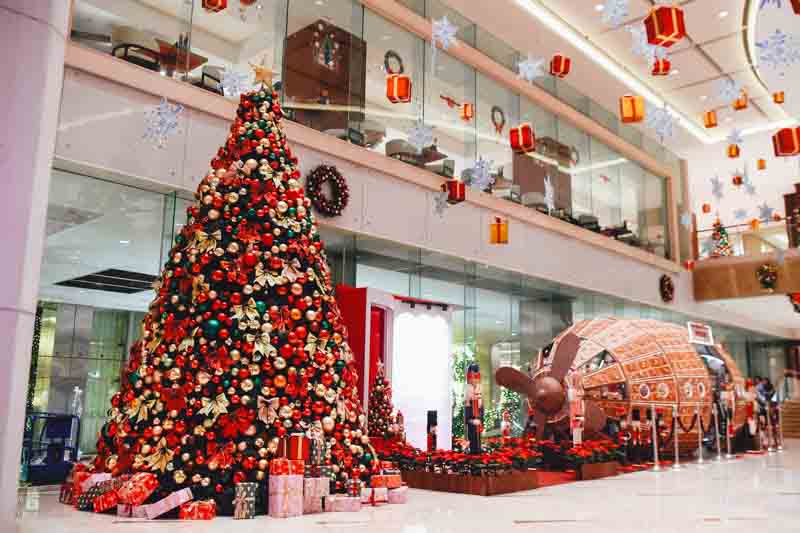 Get your holiday photos done at the Pudong Shangri-La, Shanghai. The entire hotel is decked out in Christmas cheer. The lobby is the most festive area with a gigantic Christmas tree.