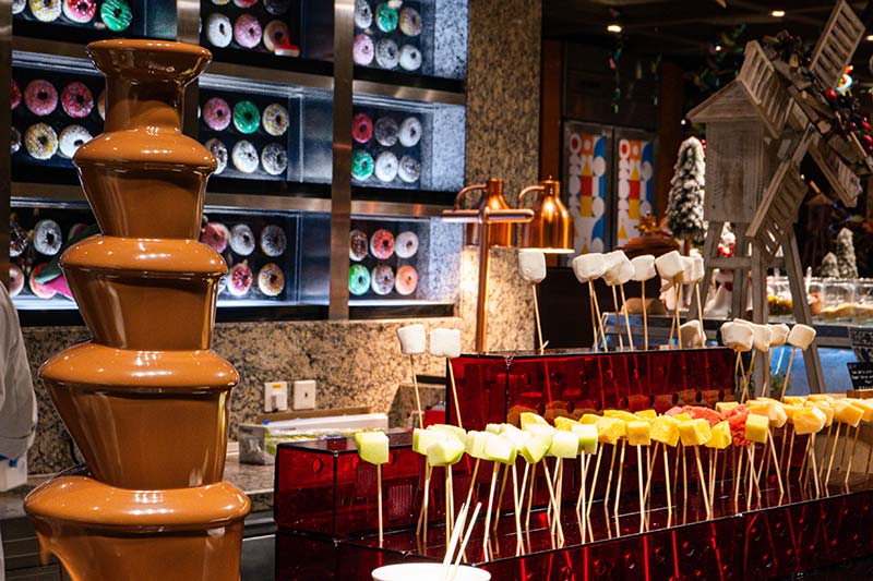 To cap off your festive cheer, head for the dessert section. In addition to the chocolate fountain, YICAFE also has festive desserts of Christmas yule logs, fruit cake, panettone, bûche de noël, and more.